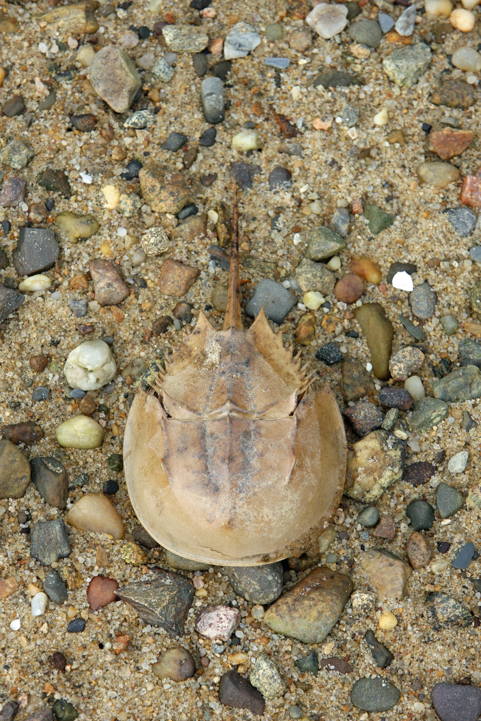 Despite the name, horseshoe crabs are not actually crabs at all, but belong to a separate class of animals more related to scorpions, spiders, and ticks. They have a hard exoskeleton called a carapace and a distinctive horseshoe-shaped shell, which protects their body from predators. They even have 10 eyes, including 2 compound eyes on the sides of their shell and a series of photoreceptors in their tails. Speaking of those tails, the dagger-like “telson” looks quite dangerous, but shouldn’t scare you. It isn’t particularly sharp and not at all poisonous and is used by the horseshoe crab to right itself if it gets flipped over on it’s back. “But wait!” you might be saying. “What about the part where a horseshoe crab saved my life?” Let’s skip ahead to that part.